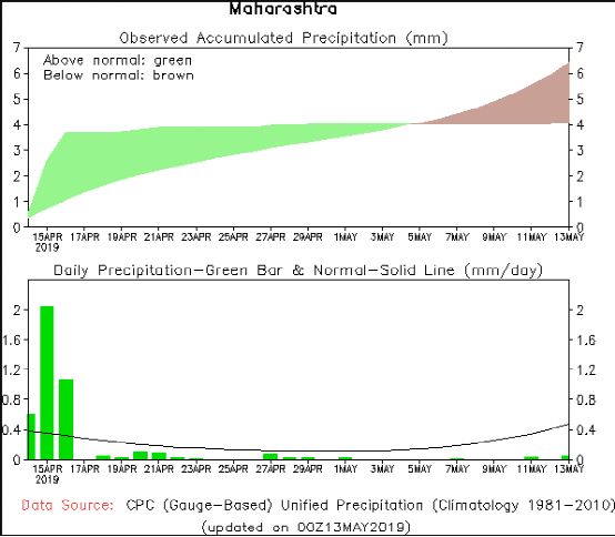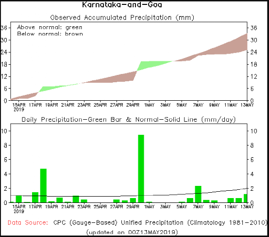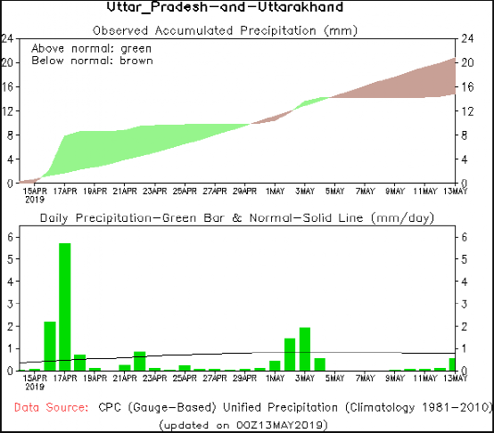 进入五月份北方邦降雨开始出现异常,小幅偏离正常降雨水位,但是北方邦距离恒河较近,一旦季风天气降雨正常,会迅速缓解干旱情况。