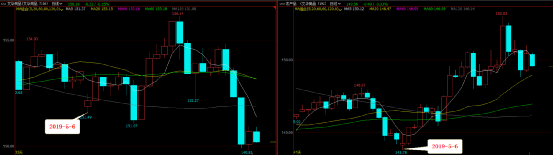 综合来看,此一波农产品普遍以上涨,领涨品种为豆粕、菜粕、豆类,分析其原因不难看出,主要有中美贸易摩擦升级、以及近期的美国豆类产区天气异常影响种植进度影响而起,天气异常也支撑了外盘多数农产品普涨。而其中两个异类品种则不涨反跌其也有自身行业的独特性,棉花受中美贸易摩擦影响不利于下游产品出口、加之国内库存充足、抛储行为,郑棉价格受压下行。白糖目前全球仍处于供过于求的局面,加之泰国、印度产量相比同期增长,致使对于泰国印度两国减产预期破灭,ICE原糖4月下旬至5月下旬一直处于下跌走势中;国内相比上榨季增产、国储糖存量较大,时有“抛储”“轮库”传闻,再有此前“外媒对中国食糖贸易救济保障措施结束后将恢复配额外关税水平的猜测”,让原本很脆弱的国内糖价雪上加霜。所以由于自身行业的因素让白糖和棉花成为普涨中的特殊品种。