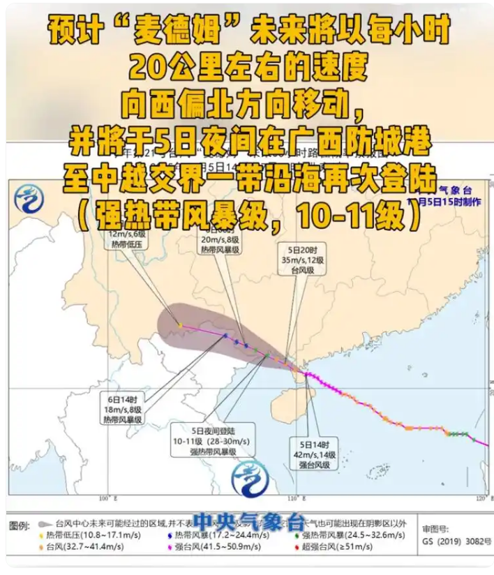 预计,“麦德姆”登陆后强度逐渐减弱,有可能在广西沿海二次登陆。