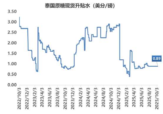 泰国方面,8月初至今泰国原糖现货对纽约原糖期货10月合约升水维持在89个点(10月船期)的偏弱水平,因需求减弱,泰国糖业公司(TCSC)在最近一轮B类配额招标中向 Alvean售出1.2万吨的高等级糖(2026年3 - 5月装船),中标价为升水原糖期货合约75点。另一方面,当前较低的升水也使得泰国糖厂销售意愿较低。泰国新榨季将在11月底至12月初启动,市场对新榨季产量及供应节奏的不确定性将影响后期的升水走势。此外,市场预计巴基斯坦11月份或出现供应短缺风险,需要进口补充,关注潜在市场需求对现货价格的支撑。
