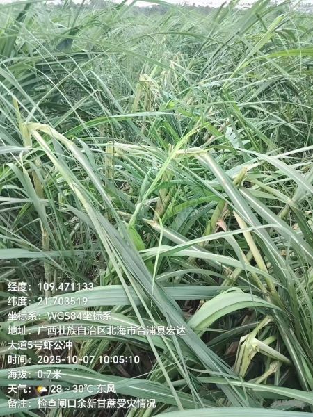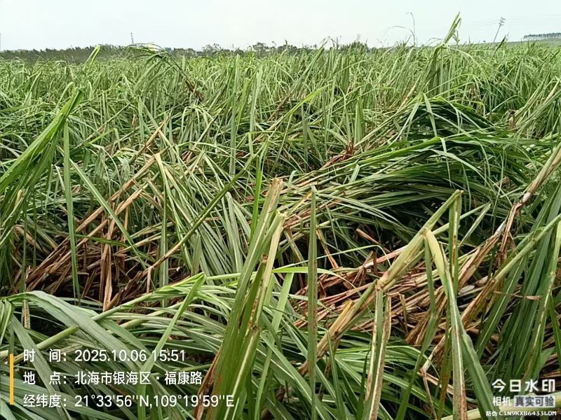 公开资料显示,2024年北海甘蔗种植面积近50万亩。以下为台风过后的蔗区受灾情况: