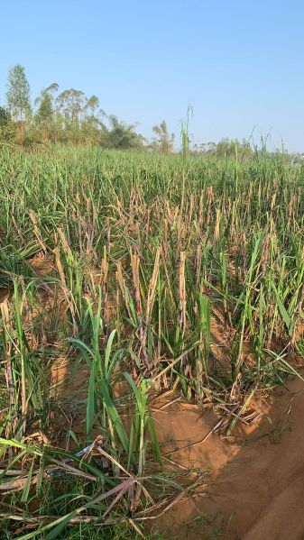 目前被折断的甘蔗已经出现蔗叶枯黄、生长停止的情况,预计单产和糖分都会遭到较大损失,而且随着时间的推移,损失可能还会慢慢增加。