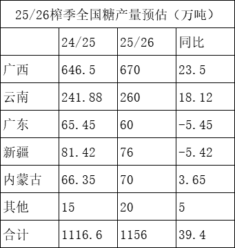 沐甜3日讯 目前北方甜菜糖厂已经全部开榨,云南第一家糖厂也已投入榨季生产当中,广西11月中旬预计也将有糖厂开榨,25/26榨季主产区的食糖生产形势已经相对清晰: