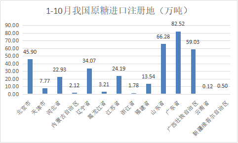 10月份进口的约71万吨原糖其中北京20万吨、广东18万吨、辽宁9万吨、天津8万吨、山东7万吨、广西6万吨,还有内蒙古和黑龙江也有1.5-2.5万吨。