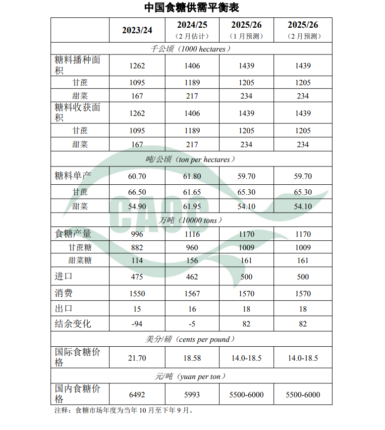 本月对中国食糖供需形势预测与上月保持一致。生产端,甜菜糖厂已有14家结束生产,甘蔗糖厂处于生产高峰。销售端,截至1月31日,广西、云南、广东分别累计销糖155.1万吨、53.2万吨、20.6万吨,同比分别下降34.9%、17.7%和28.9%。国际方面,全球市场仍延续供需宽松格局,后期需关注泰国食糖生产进度及巴西天气情况。
