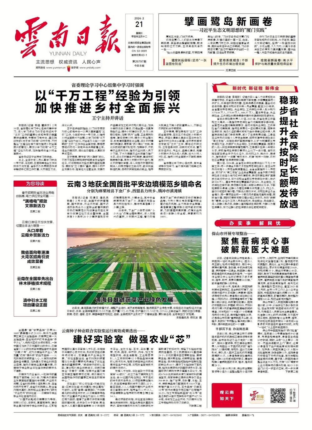 躬身沃野,科研人员从试验材料中寻找着“芯片”密钥;精准鉴评,研究团队从宝贵资源中“破译”着有利基因;热烈研讨,凝聚心血智慧的科研“金点子”竞相迸发……新春伊始,云南种子种业联合实验室再启新征程。“通过5至10年建设,集聚一批高原特色种业应用研究领域具有国际竞争力的战略科技人才、领军人才和团队,建成高原特色农业主要种类的育种4.0技术平台,构建国内国际科研合作内外畅通的新型全省种业创新体系,变云南资源优势为基因优势、种业优势,增强种业的核心竞争力、支撑引领能力。”创新蓝图绘就,实现云南种业科技高水平自立自强,我省农业科技工作者信心满怀、蹄疾步稳。