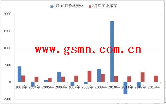 7月底工业库存量与8—10月价格变化的相关性分析