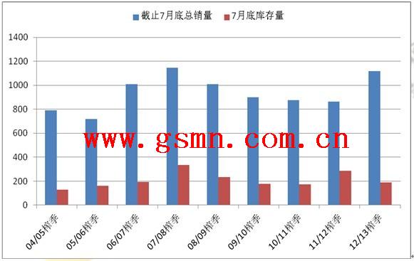 不过,就工业库存数据的统计而言,一直以来都备受争议,有相当一部分人认为产销数据存在水分。而且就7月底的产销数据而言,广西糖协统计的销售数据竟然比中糖协的销售数据多出了30万吨,两个协会之间的数据出现如此大的差距,实在是惊呆了很多人以及他们的小伙伴。另外,12/13榨季又处在下跌市当中,相关部门通过有意识的调整产销数据,人为制造利好也在情理之中。更加不能忽略的是,12/13榨季还有国家收储的存在,收储量和销售量之间有多少被重复计算,这些都需要权衡考虑,对这个看似很美的库存数据还是不要太过于乐观的对待。