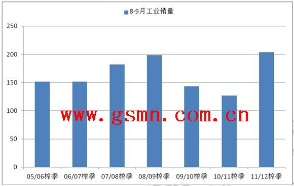 历个榨季8—9月全国销糖量情况