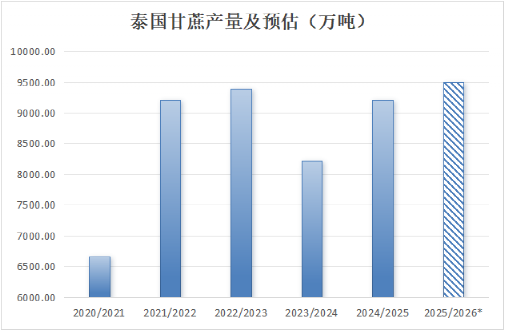 综合来看,泰国作为全球第二大白糖出口国,24/25 榨季共计出口糖542.72万吨,同比虽增加30%,但仍低于预期,导致结转库存偏高。蔗价下调虽一定程度降低糖厂生产成本,但本榨季出现印度抢占关键出口市场,叠加此前中国对泰国部分糖浆产品的进口禁令,后期出口压力仍存。鉴于前期泰国主产区出现洪涝和病虫害风险,恐对甘蔗单产造成负面影响,部分机构已对甘蔗产量小幅下调,后期关注边境局势对开榨进度的影响以及集中开榨后市场对泰国估产的进一步调整。