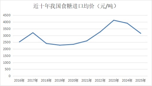 2025年我国进口食糖均价为3161元/吨(到岸价),同比下降747元/吨,为2022年以来最低水平。