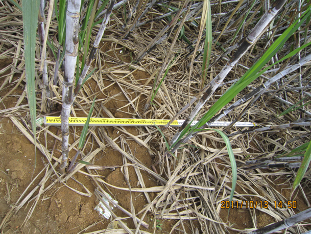 2011年10月12日,笔者再次来到崇左蔗区调研,本次调研地点为扶绥县昌平乡、中东镇、东门镇;江州区驮卢镇、罗白乡,所到蔗地大部分为之前定点监测地块,数据具有一定的代表性和连续性。