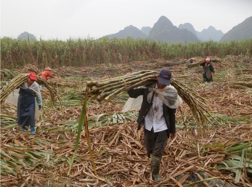 时下,我市辖区内的各大制糖企业陆续开榨,各县(市、区)蔗区的农户开展砍收甘蔗工作。今年,江州区濑湍镇种植甘蔗11.8万亩,甘蔗产量有望超过60万吨。图为濑湍镇全凤村蔗农砍收甘蔗情景。 黄英勤 摄