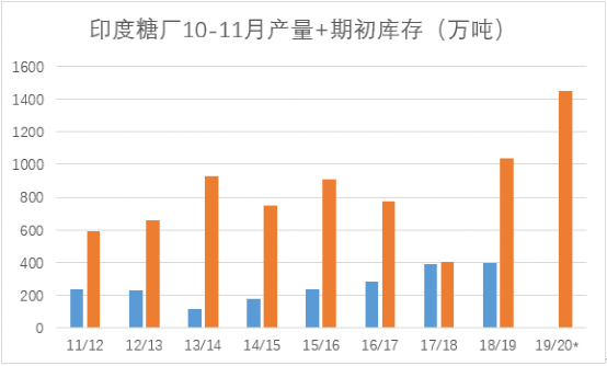 印度糖厂预计最早将于11月第一周开始19/20榨季压榨,亦有传闻可能要推迟至11月第二周,上榨季为10月20日开榨。由于上榨季开榨较早,从时间上看本榨季开榨不算延迟很多。由于印度的期初库存达到历史最高水平,开榨时间稍微延后并不会造成市场紧缺,对印度国内市场糖价支撑有限。