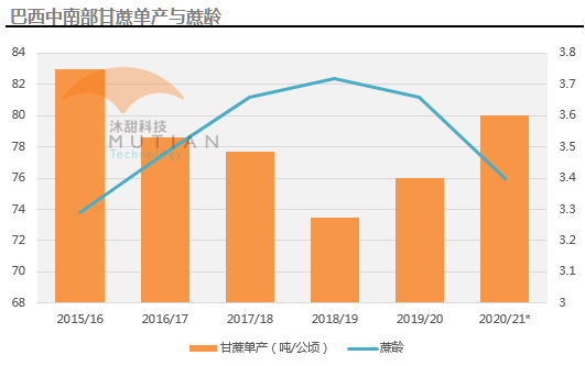 由于2019年天气良好以及新植蔗比例增加,20/21榨季甘蔗平均蔗龄从19/20榨季的3.66降至3.4,甘蔗单产预计从上榨季的76吨/公顷增加至80吨/公顷。