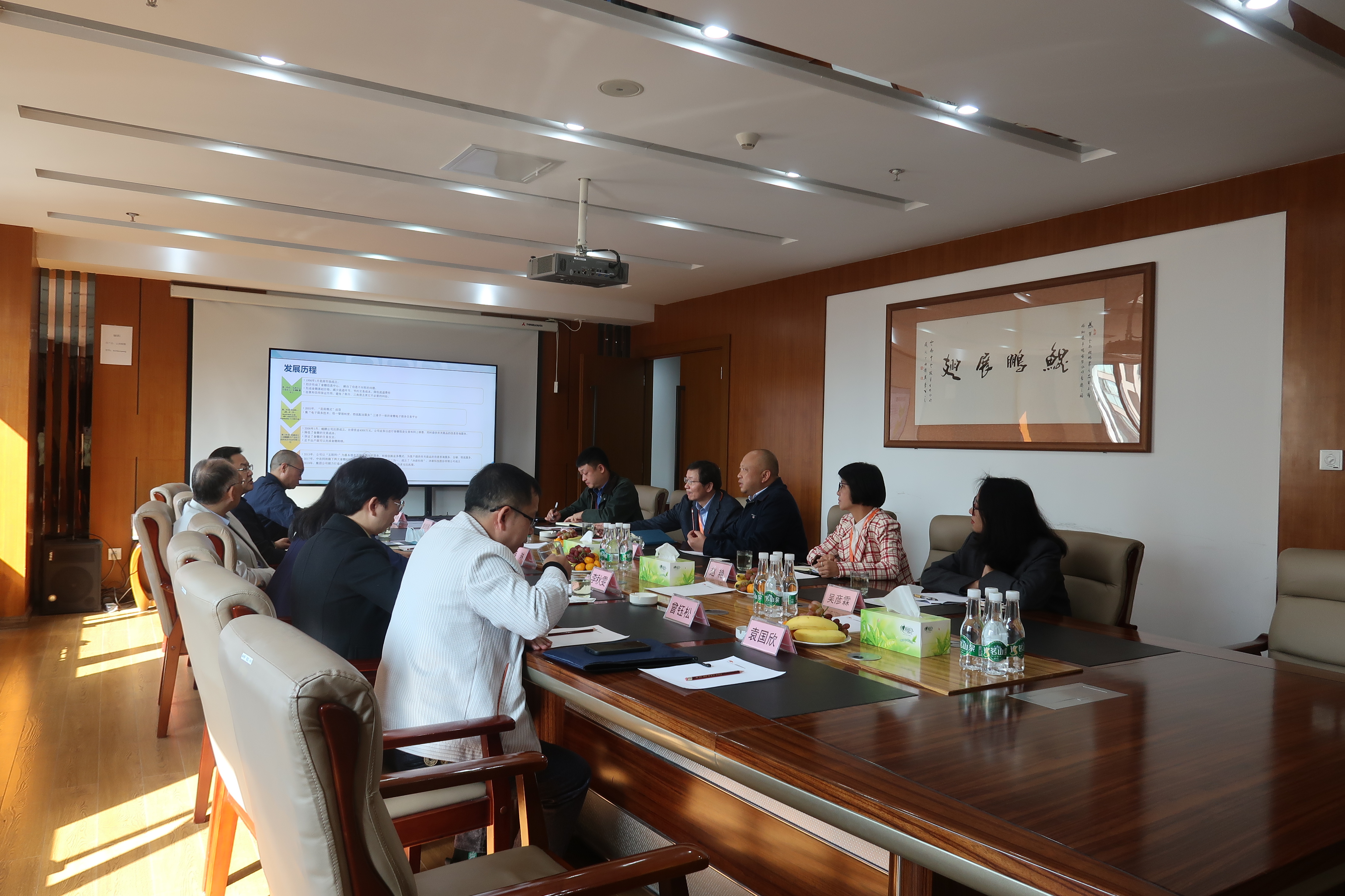 中农网副总裁高文带领沐甜科技云南鲲鹏公司同事,接待了云南省国有资本运营有限公司薛琳董事长一行,双方分别从公司历史沿革、业务板块发展、未来发展规划等各方面进行了介绍,加深了相互了解,表达了良好的加强合作的意愿。