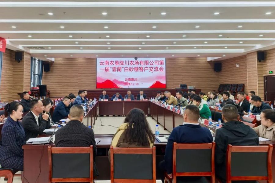 2024年12月10日,云南农垦陇川农场有限公司第一届“雲蘭”白砂糖客户交流会在陇川金融大厦二楼会议室成功举办,旨在加强与客户的沟通交流,共商行业发展,促进合作共赢。云南省糖业协会理事长邓毅,德宏州农垦局局长李晓辉,县委常委、县人民政府常务副县长沙振东出席会议。陇川县农业农村局、工业和商务科技局、陇川农场社区管理委员会相关领导与参会各用糖企业(客户)就陇川县制糖产业发展历程、核心优势以及未来战略规划进行介绍与交流。会议由陇川农场社区党委副书记、管委主任赵昌源主持。